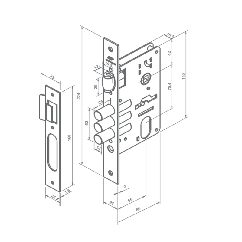 FECHADURA MULTIPONTO 03 PINOS ESCOVADA AROUCA