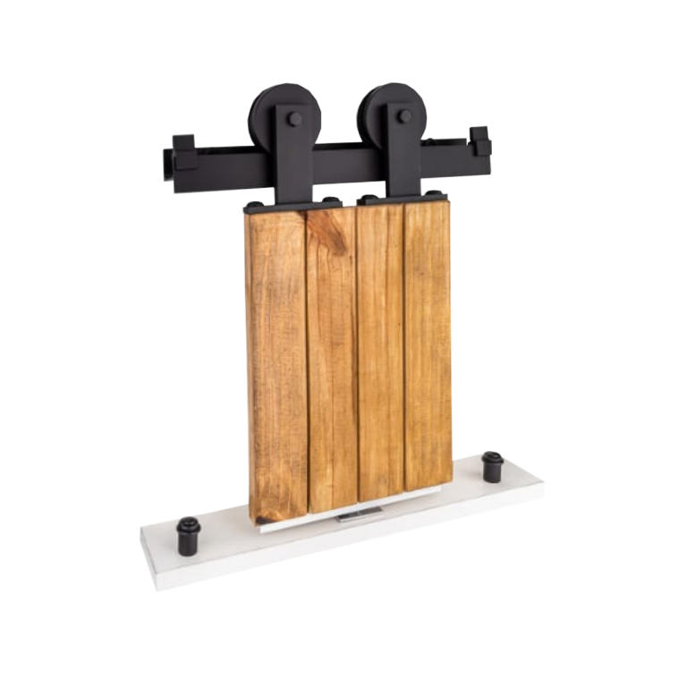O KIT para porta de correr com roldana aparente facilita a abertura e fechamento da porta pelo deslizar das roldanas, por não ter o trilho inferior aparecendo na passagem da porta esse modelo deixa o vão livre para passagem permitindo assim a locomoção de cadeirantes e pessoas com dificuldade de locomoção. O modelo Pratik possibilita a instalação de portas maciças pesadas!